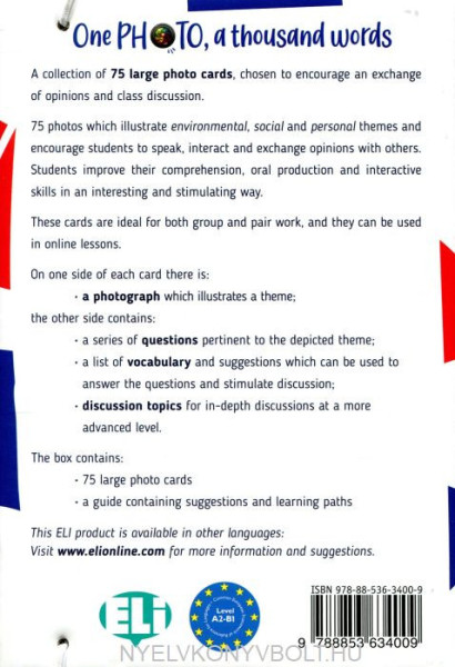 75 photos which illustrate environmental, social and personal themes and encourage students to speak, interact and exchange opinions with others. Students improve their comprehension, oral production and interactive skills in an interesting and stimulating way.