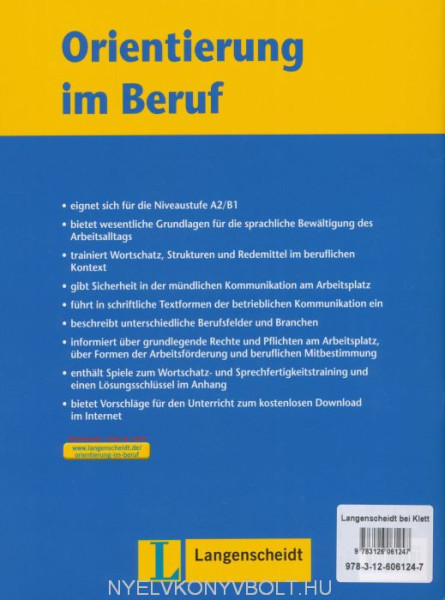 Orientierung im Beruf vermittelt zum einen wesentliche Grundlagen für die sprachliche Bewältigung des Arbeitsalltags, zum anderen aber auch arbeitsrechtliches Basiswissen und Grundkenntnisse über unterschiedliche Berufsfelder und Branchen.