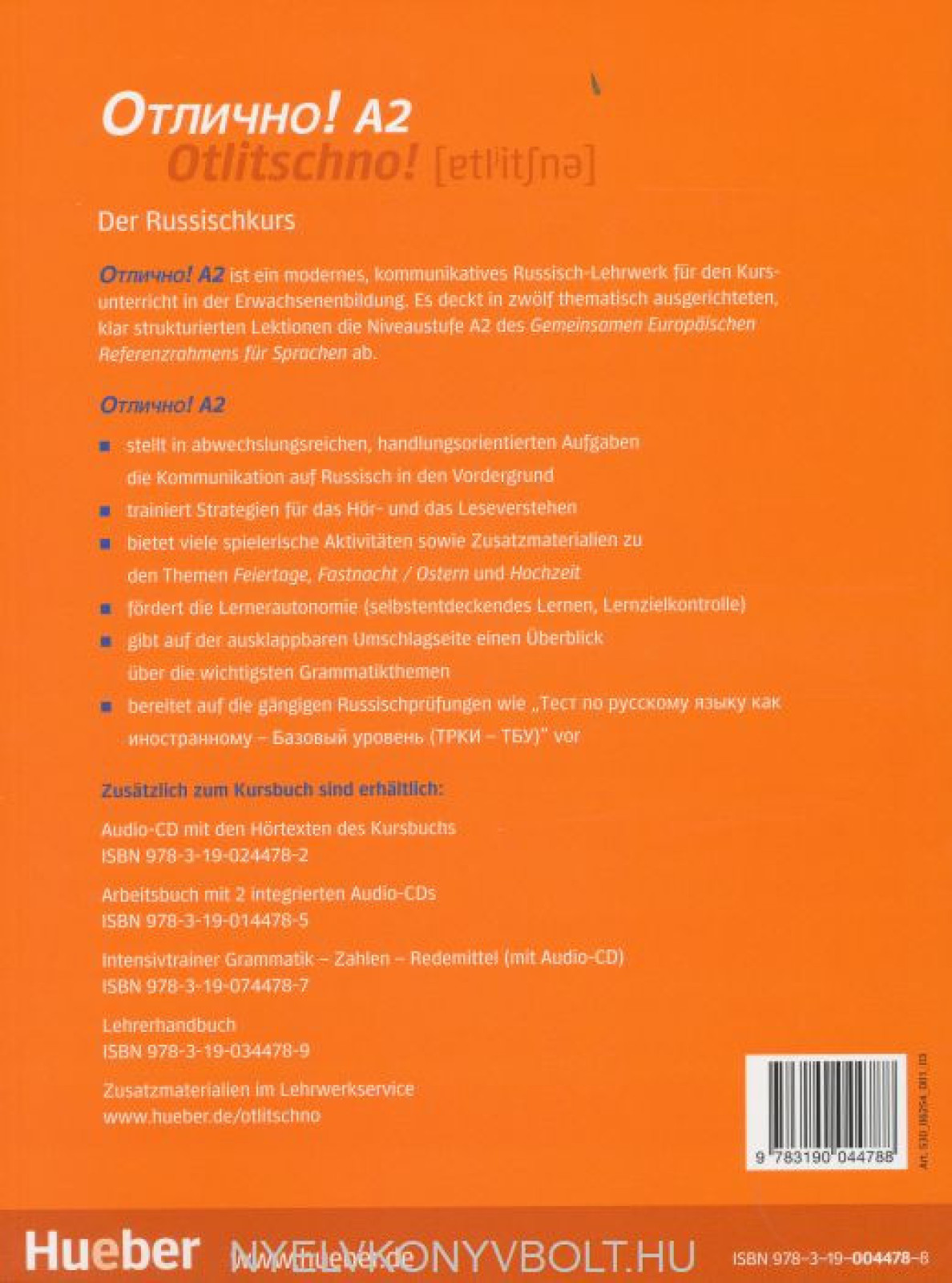 Das Lehrwerk orientiert sich genau an den Vorgaben des Europäischen Referenzrahmens. Neben der Vermittlung von Sprache und Landeskunde liegt ein Schwerpunkt auf der Förderung der Lernerautonomie. Konzeption: Otlitschno! ist ein kommunikatives Lehrwerk, das die Lernenden anhand von handlungsorientierten Aufgaben, unterschiedlichen Textsorten und vielfältigen Kommunikationssituationen von Anfang an dazu animiert, in der Fremdsprache zu agieren. Kleinschrittige Aufgaben führen systematisch den zentralen Wortschatz sowie neue grammatischen Strukturen ein und trainieren Strategien zum Lese- und Hörverstehen.