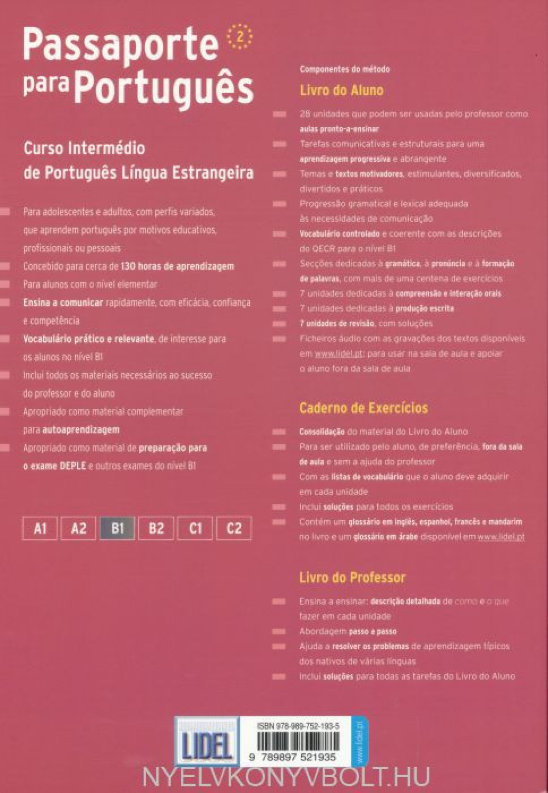 Passaporte para Portugues 2 is a Portuguese as a Foreign Language teaching method aimed at teenagers and adults who wish to acquire Portuguese language skills corresponding to CEFR level B1.