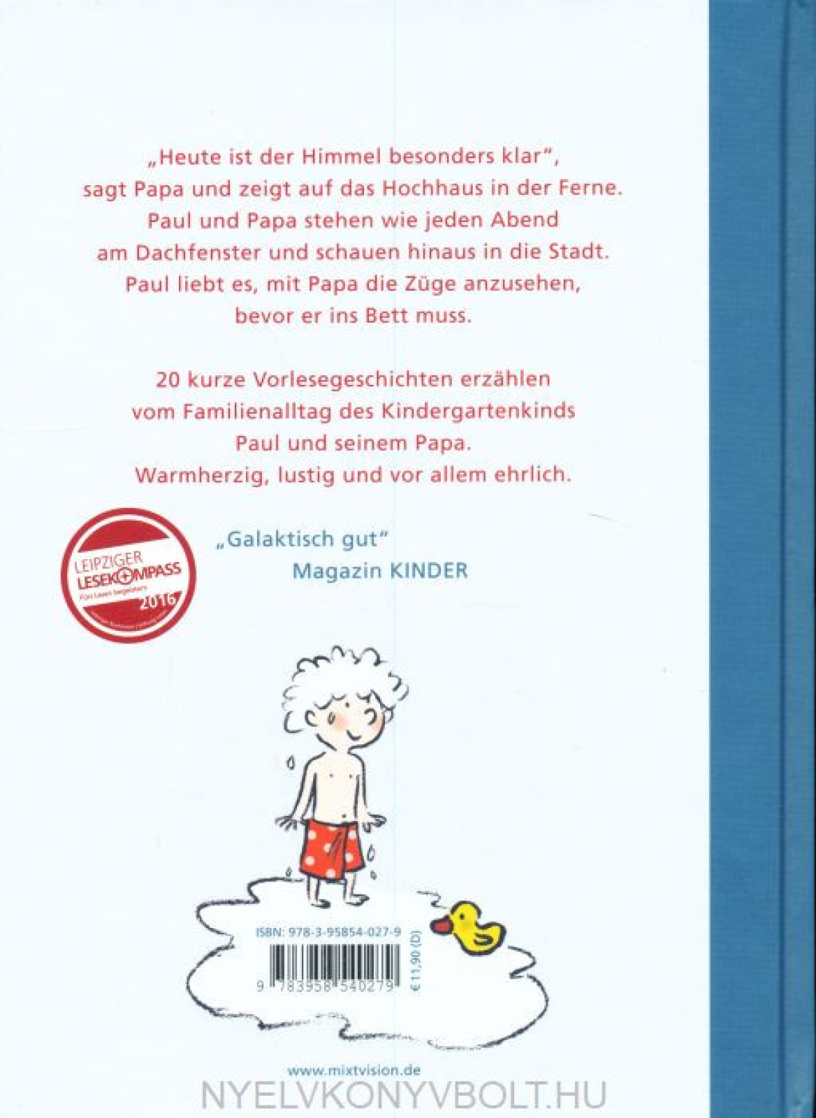 „Heute ist der Himmel besonders klar“, sagt Papa und zeigt auf das Hochhaus in der Ferne. Paul und Papa stehen wie jeden Abend am Dachfenster und schauen hinaus auf die Stadt. Paul liebt es, mit Papa die Züge anzusehen, bevor er ins Bett muss.In 20 kurzen Vorlesegeschichten erzählt Susanne Weber vom Familienalltag von Paul und Papa. Warmherzig, lustig und vor allem ehrlich.