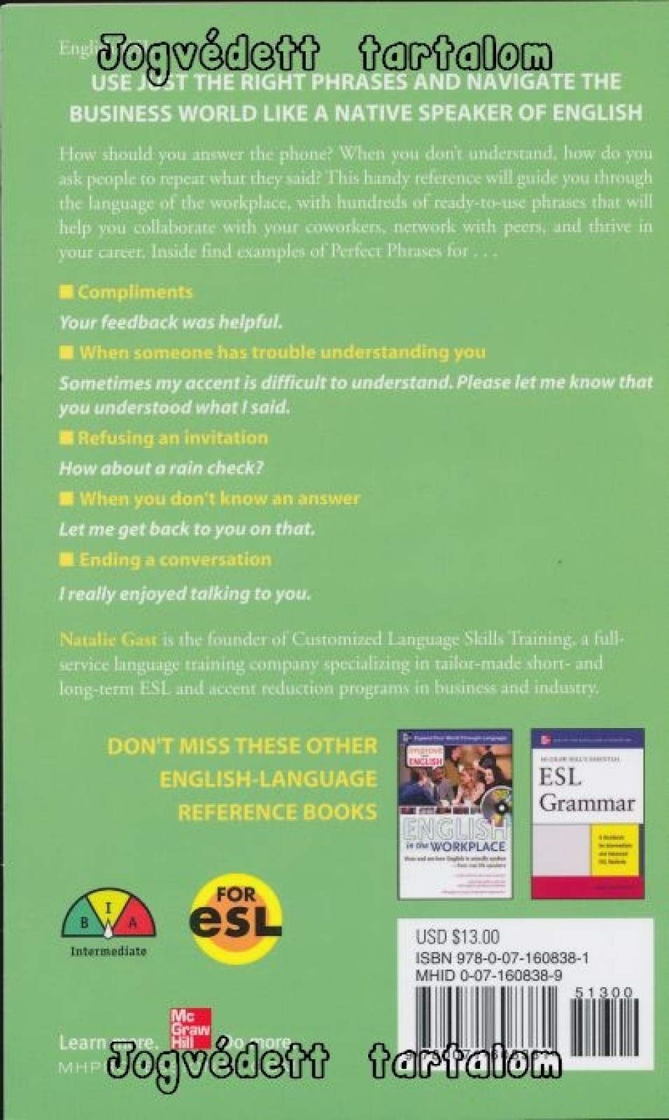 In this book she presents scenarios, business slang, and other linguistic issues that typical language texts don’t go into--for example, how to break the ice with small talk or ask for clarification. These hundreds of phrases will help you not only survive but thrive in your chosen field.