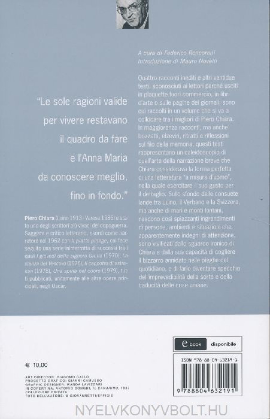 Piero Chiara e stato un narratore inesauribile di storie, nei romanzi come nella misura piu breve del racconto. E molti suoi pezzi sono stati pubblicati sparsi, nel corso degli anni, su riviste o su volumi dalla limitata diffusione. In occasione del centenario della nascita dello scrittore il suo amico ed erede letterario, Federico Roncoroni, raccoglie una scelta di quelle prove: ricordi giovanili, schizzi di vita di provincia, storie divertenti, narrazioni amorose che compongono un'antologia gustosa, sfaccettata, specchio della grande felicita inventiva di Piero Chiara.