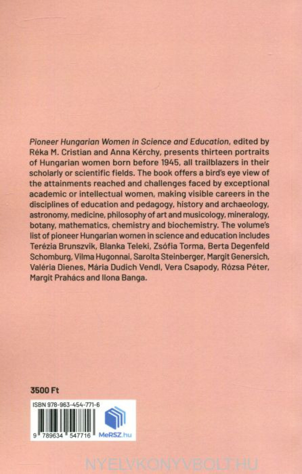 Pioneer Hungarian Women in Science and Education, edited by Réka M. Cristian and Anna Kérchy, presents thirteen portraits of Hungarian women born before 1945, all trailblazers in their scholarly or scientific fields.