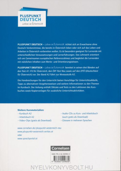 Das Lehrwerk für Erwachsene ohne Deutsch-Vorkenntnisse vermittelt durchgängig das Deutsch der österreichischen Standardsprache unter Berücksichtigung des Werte- und Orientierungswissens für das Leben und Arbeiten in Österreich. Es bereitet vor auf die Prüfungen A1 Fit für Österreich, den ÖIF-Test Neu, den Deutsch für Österreich A2-B1 sowie auf die neue Prüfung zum Werte- und Orientierungswissen.