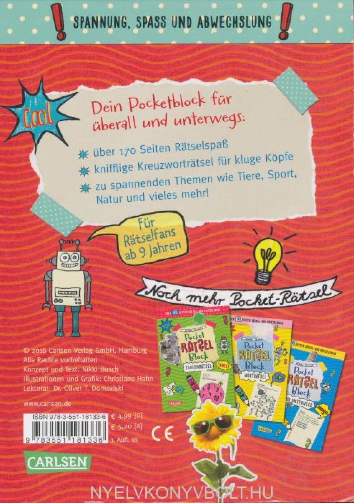 Mit diesem Pocket-Block packst du 100% Rätselspaß in deine Tasche. Egal, wo du steckst, schnapp dir einfach einen Stift und los geht’s: über 170 Seiten Rätsel sorgen garantiert für Spannung, Spaß und gute Laune.