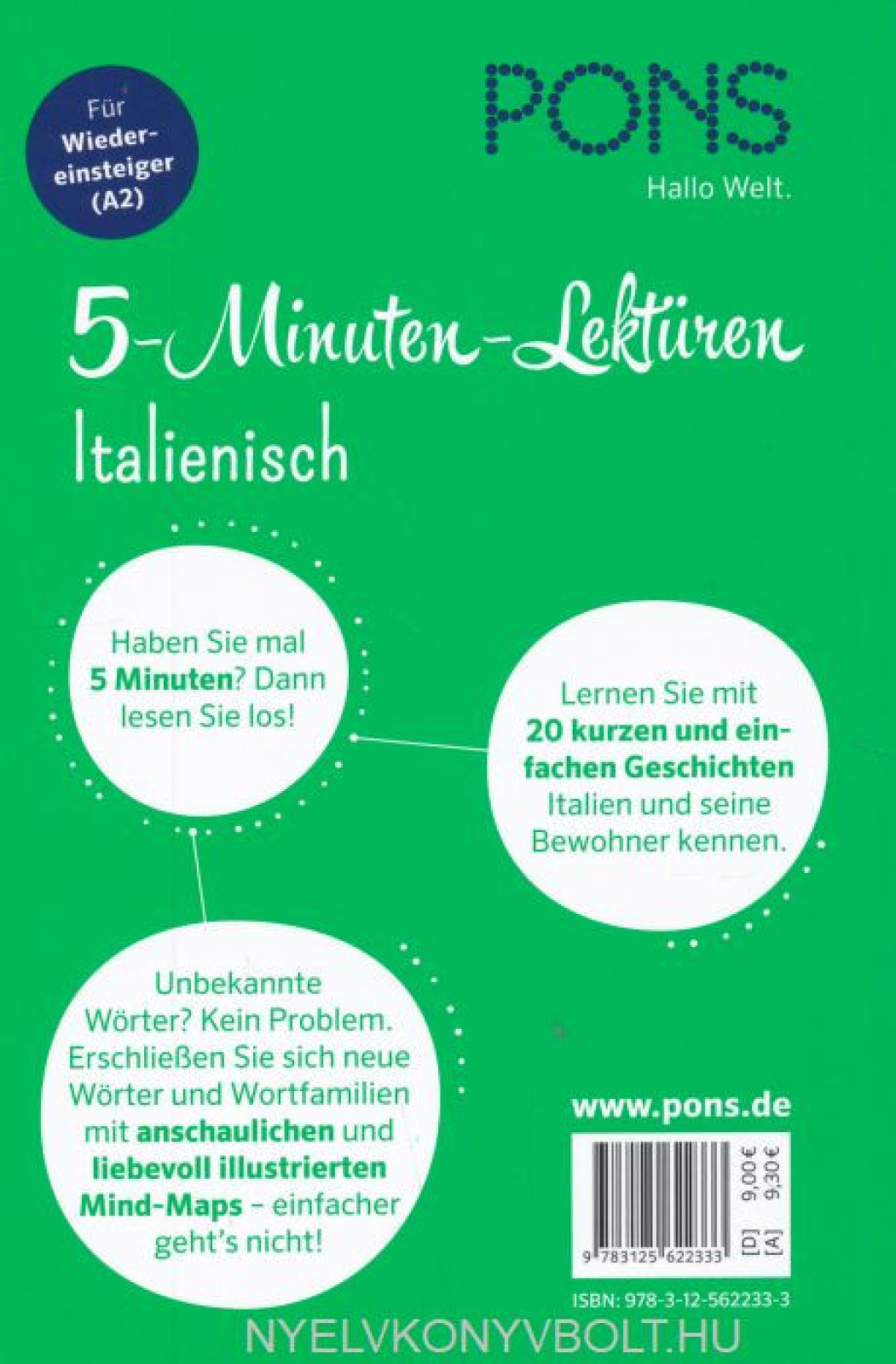 Lernen Sie mit 20 kurzen und einfachen Geschichten Italien und seine Bewohner kennen.Unbekannte Wörter? Kein Problem. Erschließen Sie neue Wörter und Wortfamilien mit anschaulichen und liebevoll illustrierten Mind-Maps – einfacher geht‘s nicht!Italienischlernen in 5-Minuten-Häppchen - ideal für die Kaffeepause, die Wartezeit am Bus oder kurze Unterrichtseinheiten.