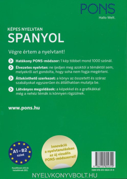A PONS Képes nyelvtan – Spanyol az új, vizuális PONS-módszernek köszönhetően nem kevesebbet vállal: forradalmat a nyelvtan tanulásában!<Enter><Enter>