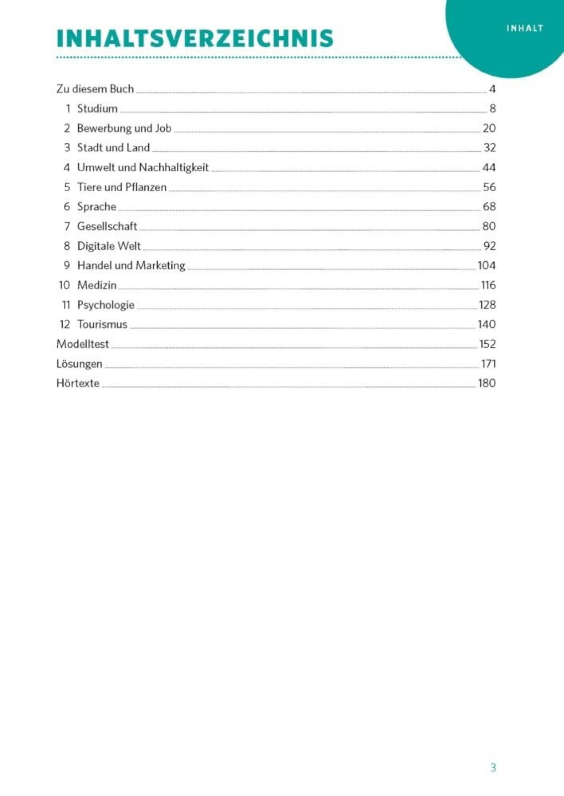 Sie trainieren alle gängigen Prüfungsformate Lesen, Hören, Schreiben und Sprechen der C1-Prüfungen und gehen damit optimal vorbereitet in die Prüfung.Zahlreiche vertonte Texte zu interessanten Themen wie Studium, Klima, Gesellschaft, Wirtschaft, Medizin …Tipps und Strategien zu schwierigeren Testformaten.Erklärungen und Übungen zu komplexen Grammatikstrukturen.Mit vollständigem Modelltest.Hörverständnis üben: Mit Audiomaterial als MP3-Download.