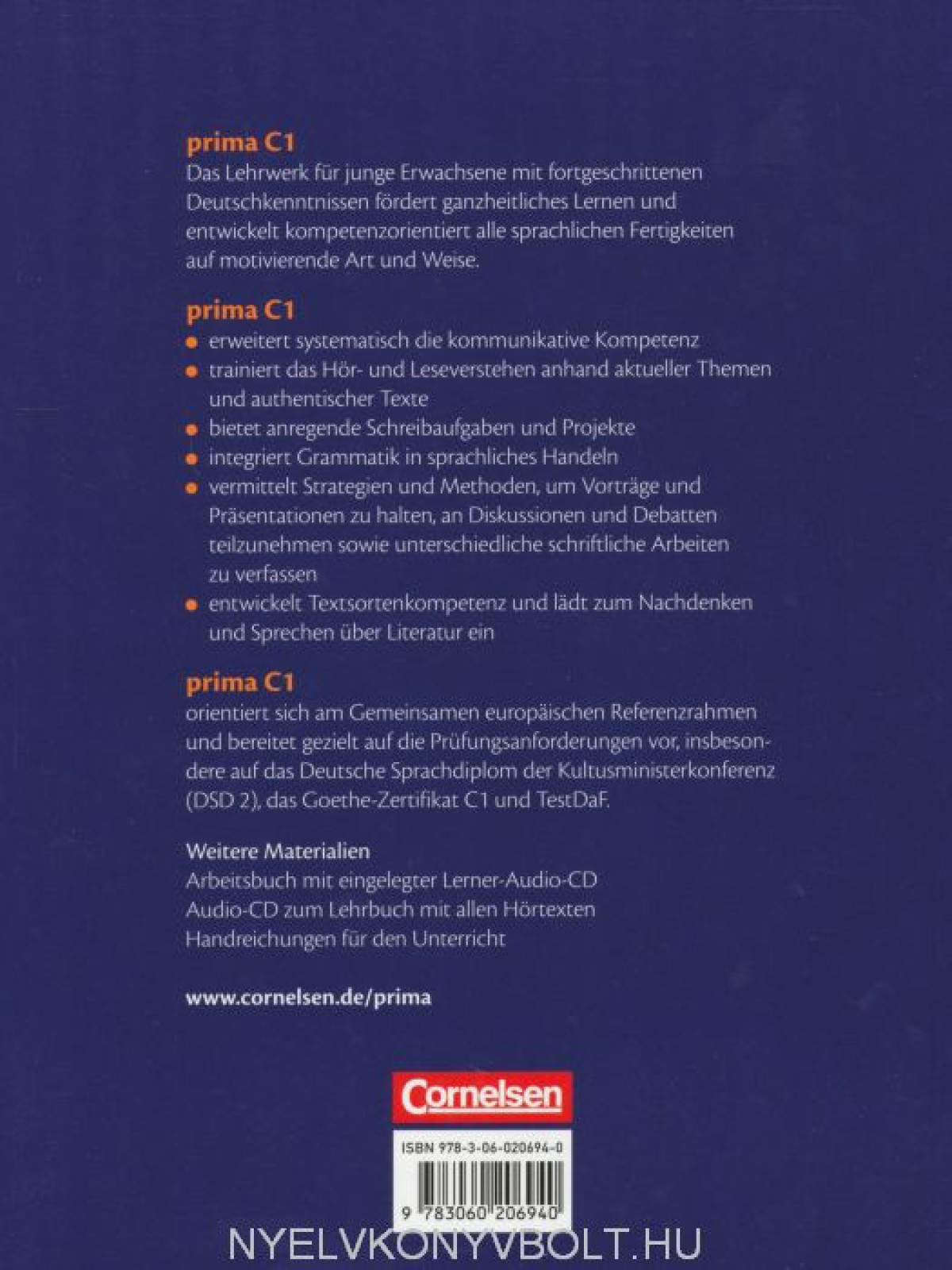 Prima richtet sich speziell an Jugendliche, die Deutsch als zweite Fremdsprache lernen. Die Bände 1 und 2 bereiten auf die Prüfung Start Deutsch 1 vor, die Bände 3 und 4 auf Start Deutsch 2, Band 5 auf das Zertifikat Deutsch.