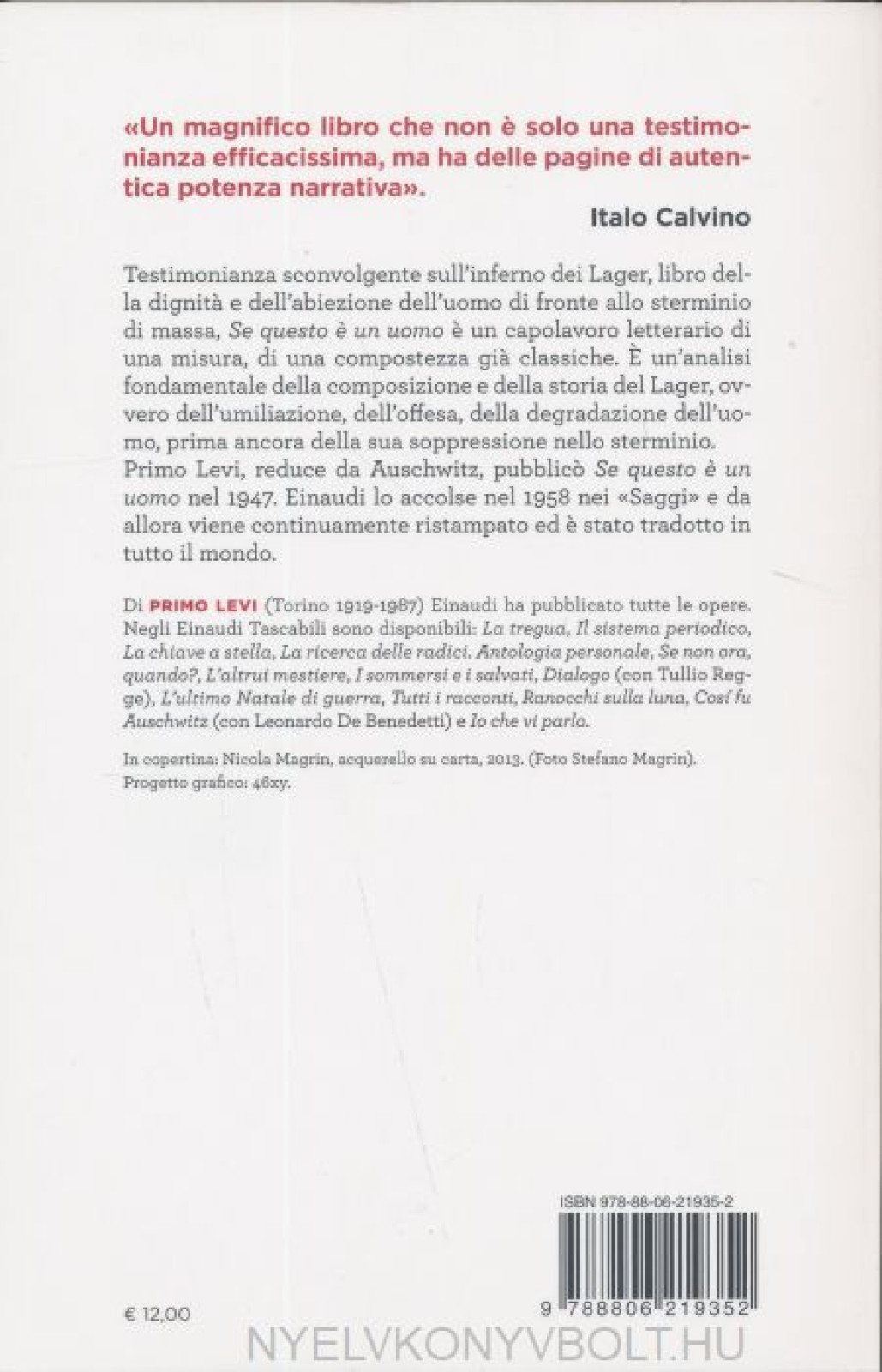 Testimonianza sconvolgente sull'inferno dei Lager, libro della dignita e dell'abiezione dell'uomo di fronte allo sterminio di massa, "Se questo e un uomo" e un capolavoro letterario di una misura, di una compostezza gia classiche. E un'analisi fondamentale della composizione e della storia del Lager, ovvero dell'umiliazione, dell'offesa, della degradazione dell'uomo, prima ancora della sua soppressione nello sterminio.Primo Levi, reduce da Auschwitz, pubblico "Se questo e un uomo nel 1947". Einaudilo accolse nel 1958 nei "Saggi" e da allora viene continuamente ristampato ed e stato tradotto in tutto il mondo.