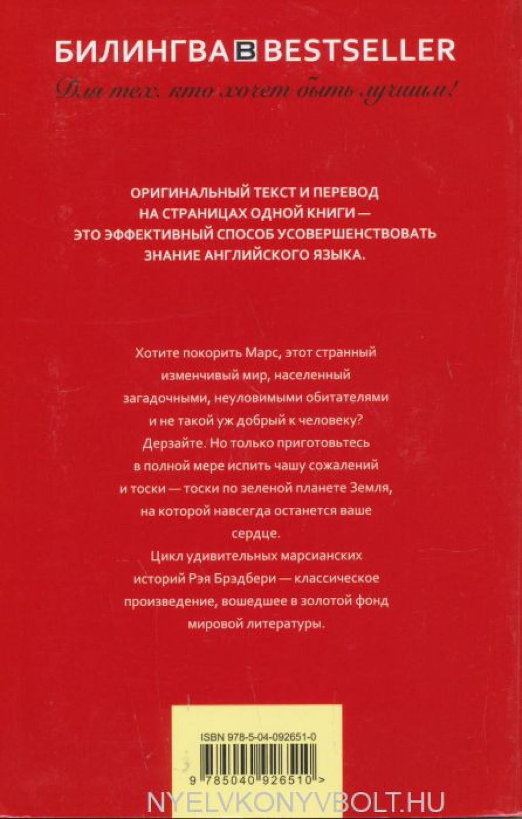 Khotite pokorit Mars, etot strannyj izmenchivyj mir, naselennyj zagadochnymi, neulovimymi obitateljami i ne takoj uzh dobryj k cheloveku? Derzajte. No tolko prigotovtes v polnoj mere ispit chashu sozhalenij i toski - toski po zelenoj planete Zemlja, na kotoroj navsegda ostanetsja vashe serdtse.Tsikl udivitelnykh marsianskikh istorij Reja Bredberi - klassicheskoe proizvedenie, voshedshee v zolotoj fond mirovoj literatury.