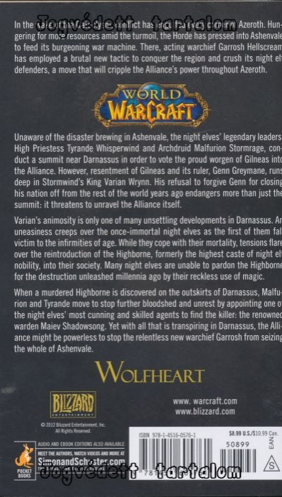 In the wake of the Cataclysm, conflict has engulfed every corner of Azeroth. Hungering for more resources amid the turmoil, the Horde has pressed into Ashenvale to feed its burgeoning war machine. There, acting warchief Garrosh Hellscream has employed abrutal new tactic to conquer the region and crush its night elf defenders, a move that will cripple the Alliance?s power throughout Azeroth. Unaware of the disaster brewing in Ashenvale, the night elves? legendary leaders, High Priestess Tyrande Whisperwind and Archdruid Malfurion Stormrage, conduct a summit near Darnassus in order to vote the proud worgen of Gilneas into the Alliance. However, resentment of Gilneas and its ruler, Genn Greymane, runs deep in Stormwind?s King Varian Wrynn. His refusal to forgive Genn for closing his nation off from the rest of the world years ago endangers more than just the summit: it threatens to unravel the Alliance itself.