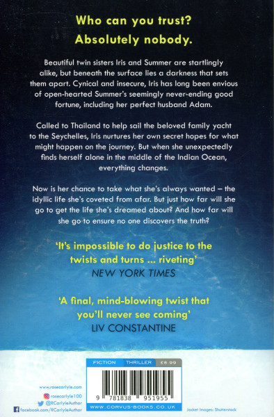 Cynical and insecure, Iris has long been envious of open-hearted Summer's seemingly never-ending good fortune, including her perfect husband Adam.Called to Thailand to help sail the beloved family yacht to the Seychelles, Iris nurtures her own secret hopes for what might happen on the journey. But when she unexpectedly finds herself alone in the middle of the Indian Ocean, everything changes. Now is her chance to take what she's always wanted - the idyllic life she's coveted from afar. But just howfar will she go to get the life she's dreamed about? And how far will she go to ensure no one discovers the truth?