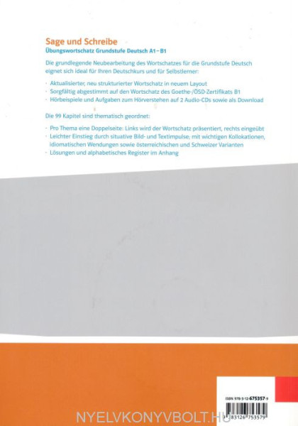 Diese grundlegende Neubearbeitung des Übungswortschatzs Sage und Schreibe ist sorgfältig auf den Wortschatz des Goethe-/ÖSD-Zertifikats B1 abgestimmt.