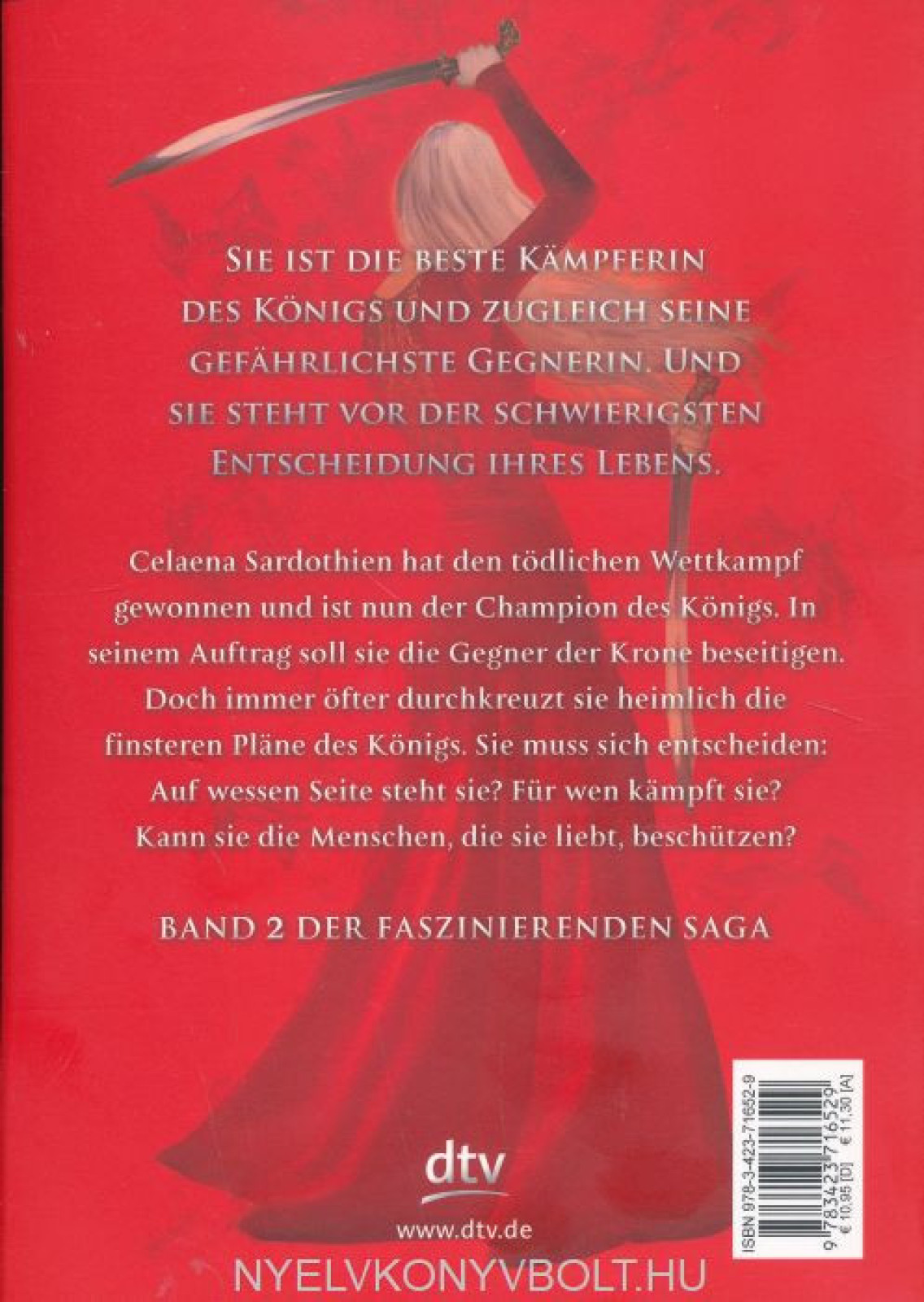 Nach seinen Vorgaben soll sie unliebsame Gegner beseitigen, die dessen grausame Herrschaft beenden wollen. Doch statt sie aus dem Weg zu räumen, warnt Celaena seine Feinde und ermöglicht ihnen so die Flucht. Dieses Geheimnis verbirgt sie zunächst selbstvor Chaol, zu dem sie sich gegen ihren Willen immer mehr hingezogen fühlt. Wie sehr kann sie ihm vertrauen? Schließlich ist Chaol der Captain der königlichen Leibgarde. Soll sie auf ihr Herz oder ihren Verstand hören?