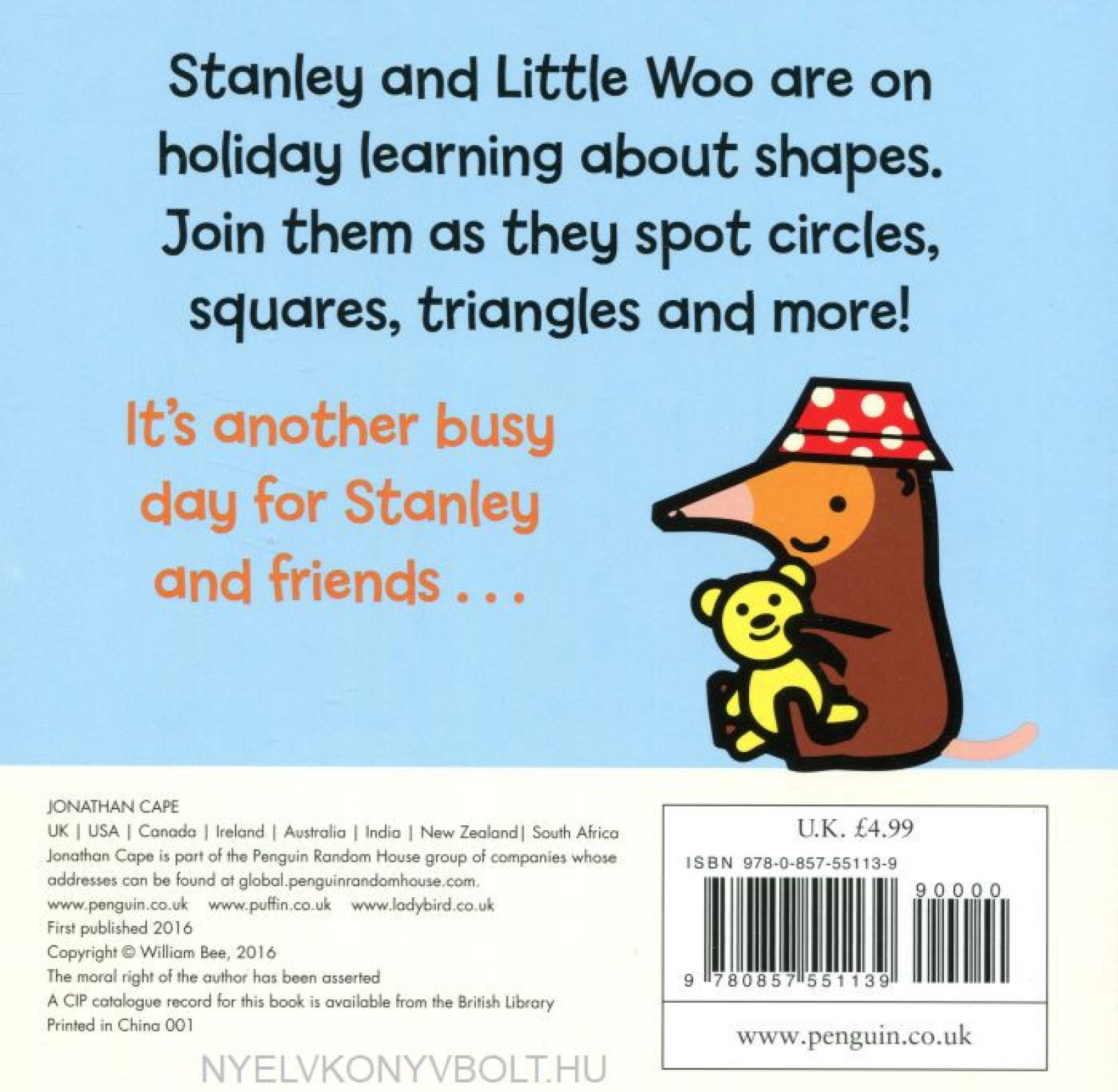 Stanley and Little Woo are on holiday learning about shapes in this gorgeous little board book. Join them as they spot circles, squares, triangles and more!