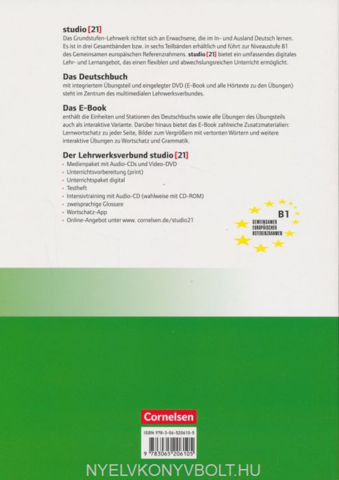 Das Lehrwerk richtet sich an Erwachsene ohne Vorkenntnisse, die im In- und Ausland Deutsch lernen. Es liegt in drei Gesamtbänden bzw. in sechs Teilbänden vor und führt zur Niveaustufe B1. Das umfassende digitale Lehr- und Lernangebot von studio [21] garantiert einen flexiblen und abwechslungsreichen Unterricht.Das Deutschbuch mit integriertem Übungsteil und E-Book steht im Zentrum des multimedialen Lehrwerksverbundes.