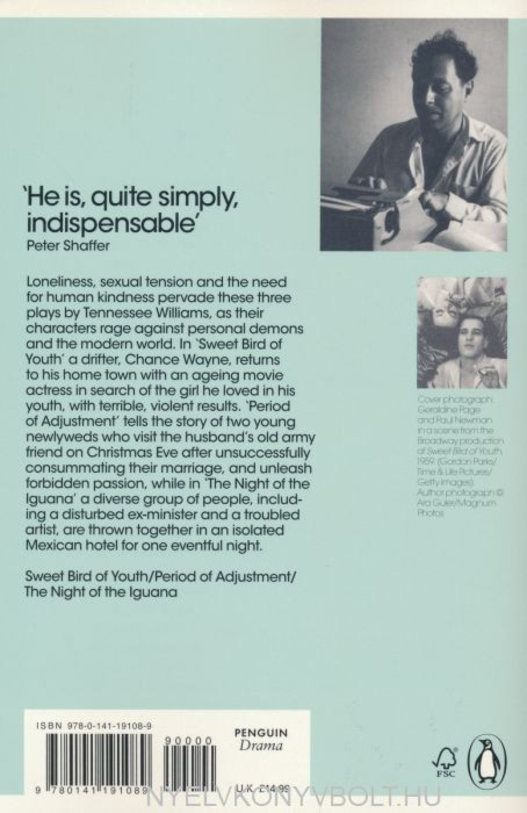 In 'Sweet Bird of Youth', a drifter, Chance Wayne, returns to his home town with an ageing movie actress in search of the girl he loved in his youth, but with terrible, violent results. 'Period of Adjustment' tells the story of two young newlyweds who visit the husband's old army friend on Christmas Eve after unsuccessfully consummating their marriage, and unleash forbidden passion, while in 'The Night of the Iguana' a diverse group of people, including a disturbed ex-minister and a troubled spinster, are thrown together in an isolated Mexican hotel for one eventful night.