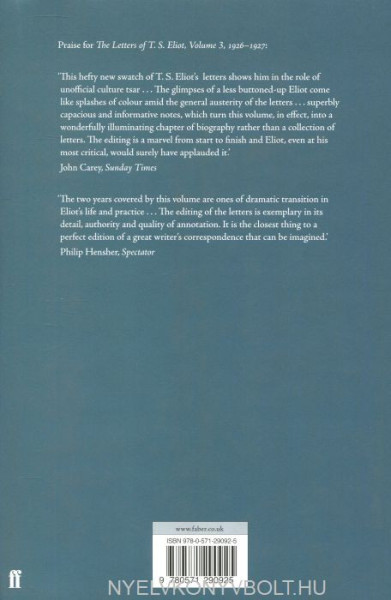 Volume 4 of the letters of T. S. Eliot, which brings the poet, critic, editor and publisher into his forties, documents a period of anxious and fast-moving professional recovery and personal and spiritual consolidation.<Enter>