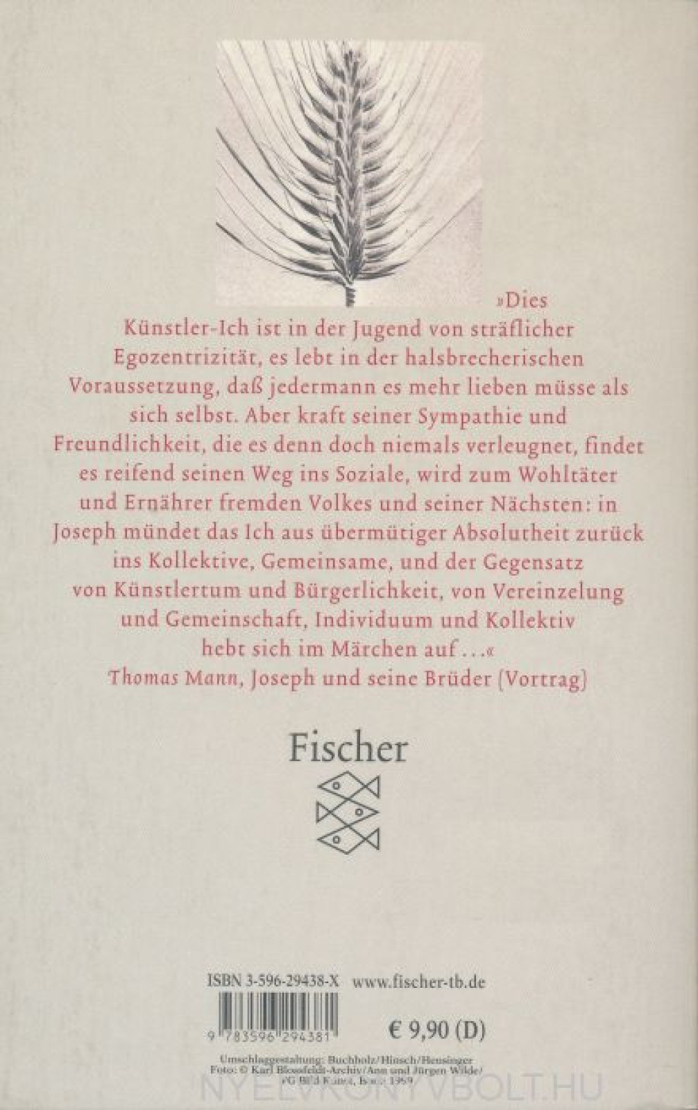 Nach drei Jahren im Gefängnis kann sich Joseph dank seiner Fähigkeit zur Traumdeutung befreien. Er ist der einzige, der die Träume des Pharao versteht und als mythische Ankündigung sieben fetter und sieben magerer Jahre auslegt. Er gibt dem Pharao den Rat, die Fülle der fetten Jahre zum Vorrat für die mageren zu nutzen, der dankbare Pharao überträgt diese Aufgabe Joseph, dem Ernährer. Die Dürre der mageren Jahre treibt die Hirten Kanaans nach Ägypten, es kommt zum Wiedersehen mit den Brüdern und mit Jaakob. Der abschließende vierte Teil der 'Josephs'-Romane erschien 1943 bei Bermann-Fischer in Stockholm.