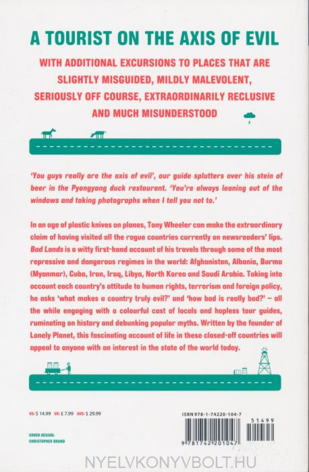 In an age of plastic knives on planes, Tony Wheeler can make the extraordinary claim of having visited all the rogue countries currently on newsreaders' lips. Bad Lands is a witty first-hand account of his travels through places often perceived as having some of the most repressive and dangerous regimes in the world: Afghanistan, Albania, Burma, Cuba, Iran, Iraq, Libya, North Korea and Saudi Arabia. Taking into account each country's attitude to human rights, terrorism and foreign policy, he asks 'whatmakes a country truly evil?' and 'how bad is really bad?' - all the while engaging with a colourful cast of locals and hapless tour guides, ruminating on history and debunking popular myths.