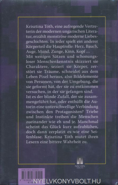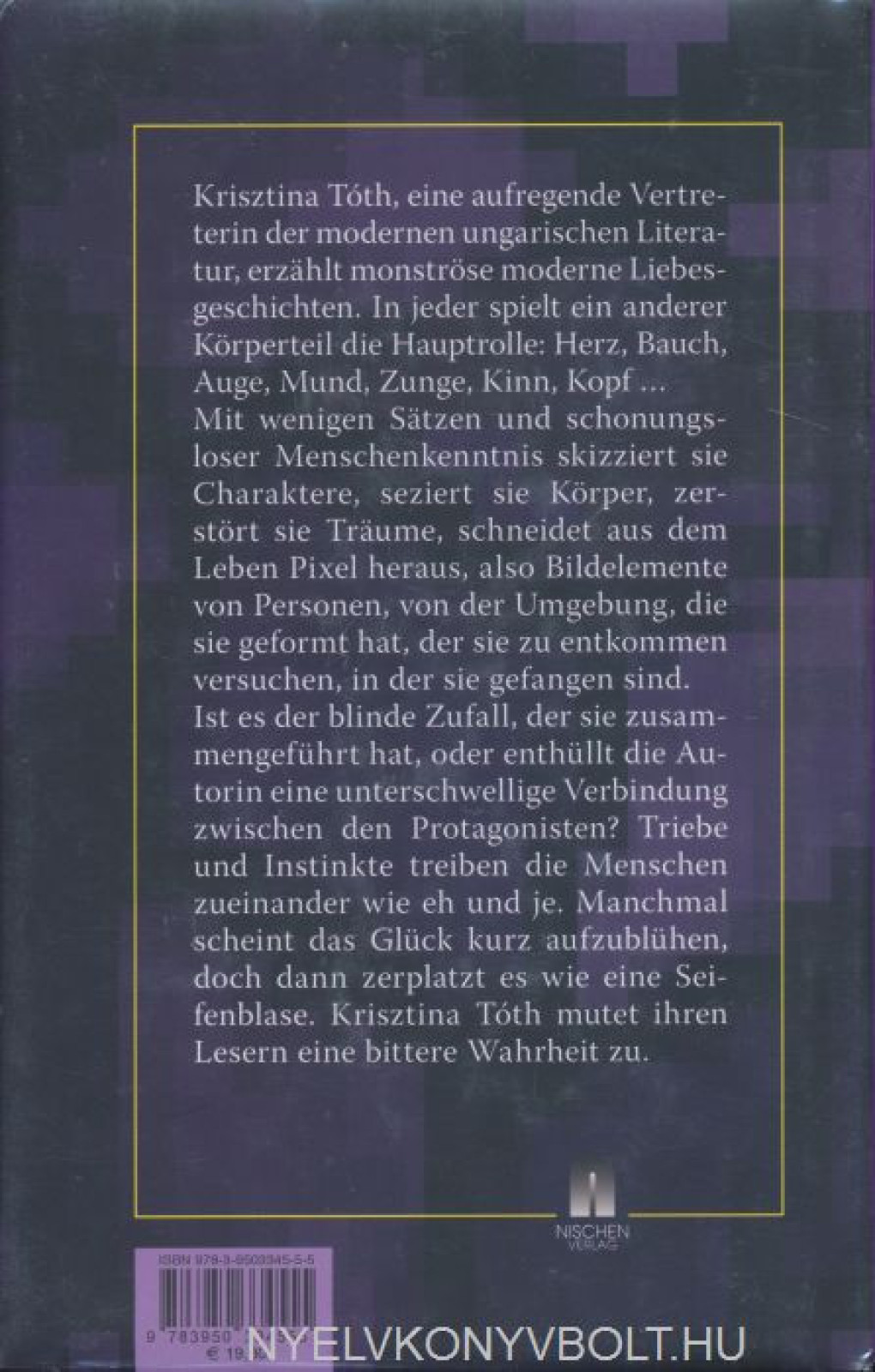 Krisztina Tóth, eine anregende und angesehene Vertreterin der modernen ungarischen Literatur, schildert in einzelnen Kapiteln jeweils die eigene Geschichte von Körperteilen (wie Herz, Bauch, Mund, Zunge, usw.) und dann verbindet sie diese wie Pixel,...