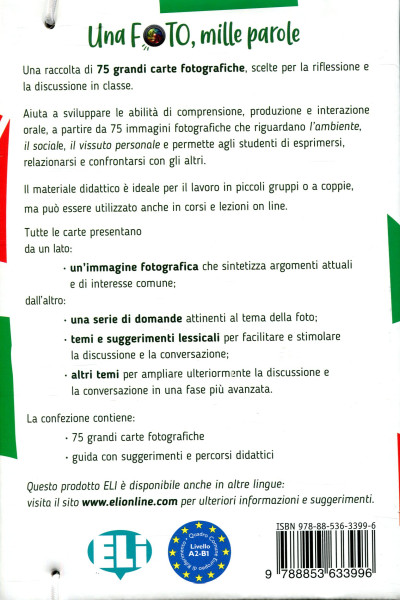 Una foto, mille parole e una raccolta di 75 carte fotografiche, ideata per gli studenti/le studentesse di livello linguistico A2-B1 del Quadro Comune Europeo di Riferimento.