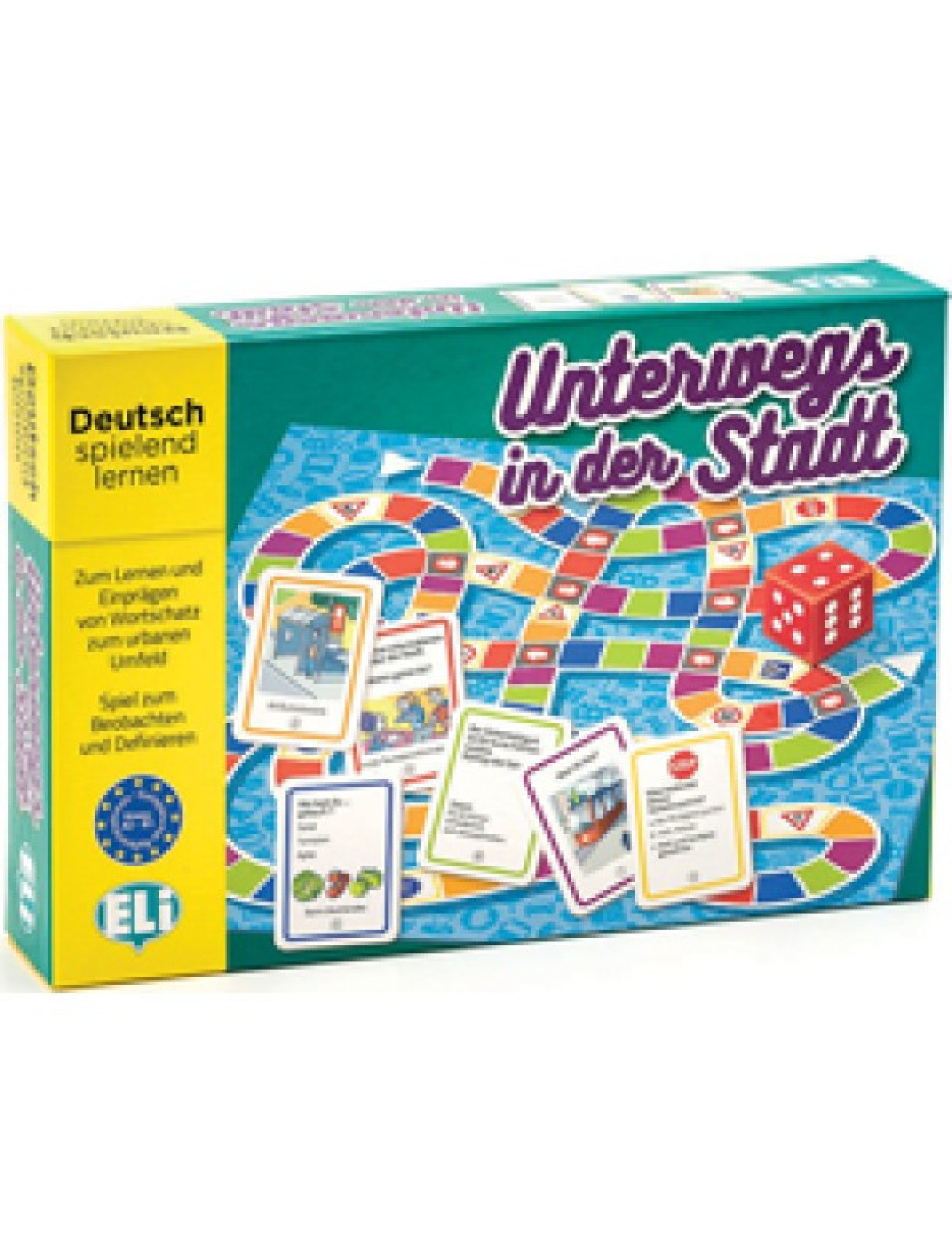 Unterwegs in der Stadt ist ein lebendiges Brettspiel, das auf der Betrachtung von Illustrationen aus der Stadt beruht.Lerner entwickeln auf spielerische Art ihren Wortschatz zu Dingen und Orten aus der Stadt, wie Geschäfte, Transportmittel, Straßenschilder, sowie Sicherheit im Straßenverkehr. Das Spiel kann im Klassenraum mit dem Lehrer oder mit Freunden zu Hause genutzt werden.