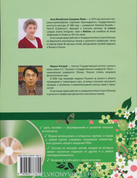 Etot printsip pozvoljaet izuchat temy v ljubom porjadke i legko mozhet byt adaptirovan pod ljubuju programmu obuchenija.Prednaznacheno dlja raboty v otkrytykh gruppakh, a takzhe v ljuboj gruppe uchaschikhsja, osvoivshikh elementarnyj uroven obschego vladenija RKI kak v uslovijakh jazykovoj sredy, tak i vne ee.Bogatyj illjustrativnyj material i koloritnye personazhi, ot litsa kotorykh provodjatsja uroki, prizvany zarjadit uchaschikhsja polozhitelnoj energiej dlja aktivnoj raboty na zanjatijakh.Vseuroki postroeny po printsipu izbytochnosti materiala, chtoby prepodavatel mog postroit urok po svoemu usmotreniju.