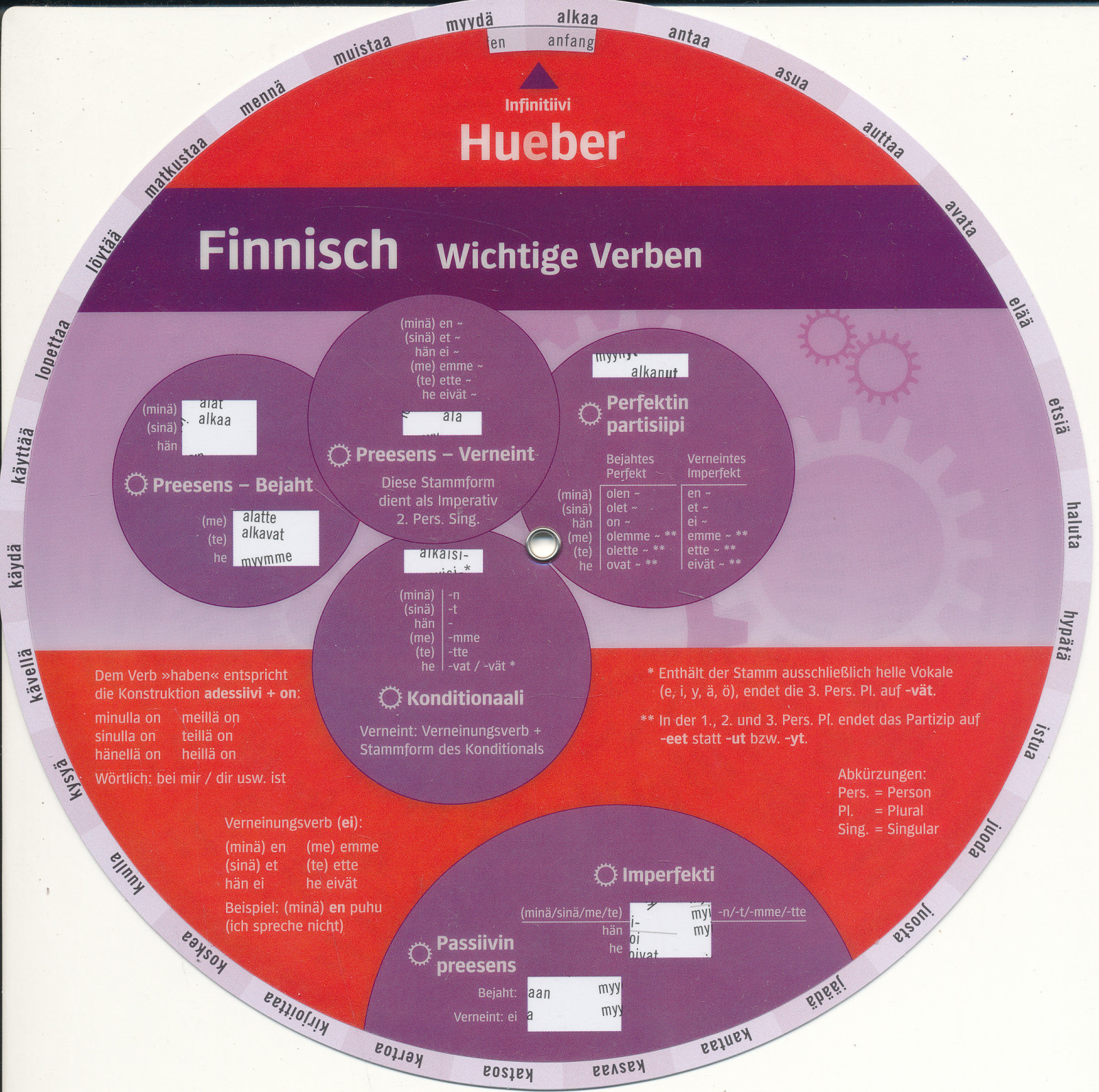 Wichtige Verben Finnisch bietet zu 60 wichtigen Verben Konjugationen in den gebräuchlichsten Zeiten sowie die Übersetzung des Infinitivs.