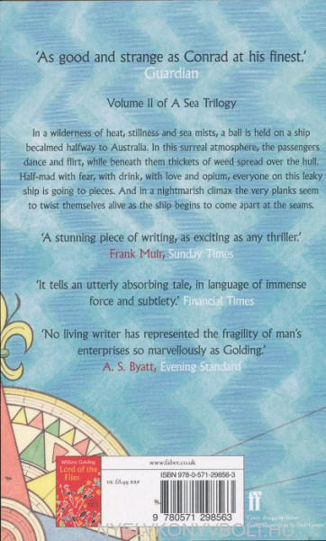 In a wilderness of heat, stillness and sea mists, a ball is held on a ship becalmed halfway to Australia. In this surreal, fete-like atmosphere the passengers dance and flirt, while beneath them thickets of weed like green hair spread over the hull. Thesequel to Rites of Passage, Close Quarters, the second volume in Golding's acclaimed sea trilogy, is imbued with his extraordinary sense of menace. Half-mad with fear, with drink, with love and opium, everyone on this leaky, unsound hulk is 'going to pieces'. And in a nightmarish climax the very planks seem to twist themselves alive as the ship begins to come apart at the seams.