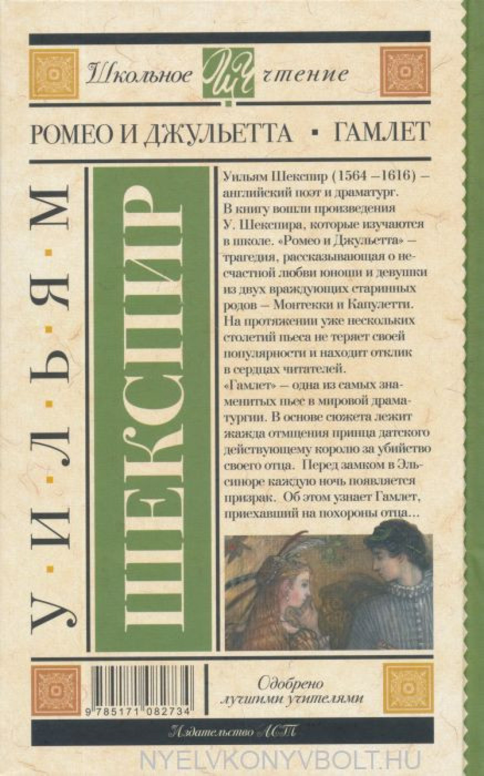 V knigu voshli proizvedenija U. Shekspira, kotorye izuchajutsja v shkole. "Romeo i Dzhuletta" - tragedija, rasskazyvajuschaja o ljubvi junoshi i devushki iz dvukh vrazhdujuschikh starinnykh rodov – Montekki i Kapuletti, i odna iz samykh znamenitykh pes v mirovoj literature "Gamlet".